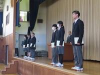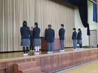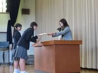 9月30日(火)6校時終了後、体育館にて賞状伝達と前期終業式、後期生徒会役員認証式が行われました。