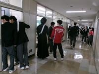 勧誘は各部活動2名までがタスキを着用して、1年生HR教室のある3階の廊下で勧誘活動を行いました。