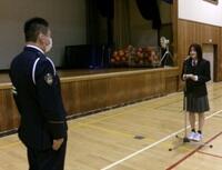 新入生は吹奏楽局の演奏で入退場し、校歌紹介では、吹奏楽局、野球部、柔道部、バレーボール部、女子バスケットボール部の生徒と教職員により校歌を紹介しました。