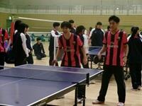 1日目は、バドミントン(男子)、バレーボール(女子)、卓球ダブルス(男女)、全体競技(綱引き)を行いました。